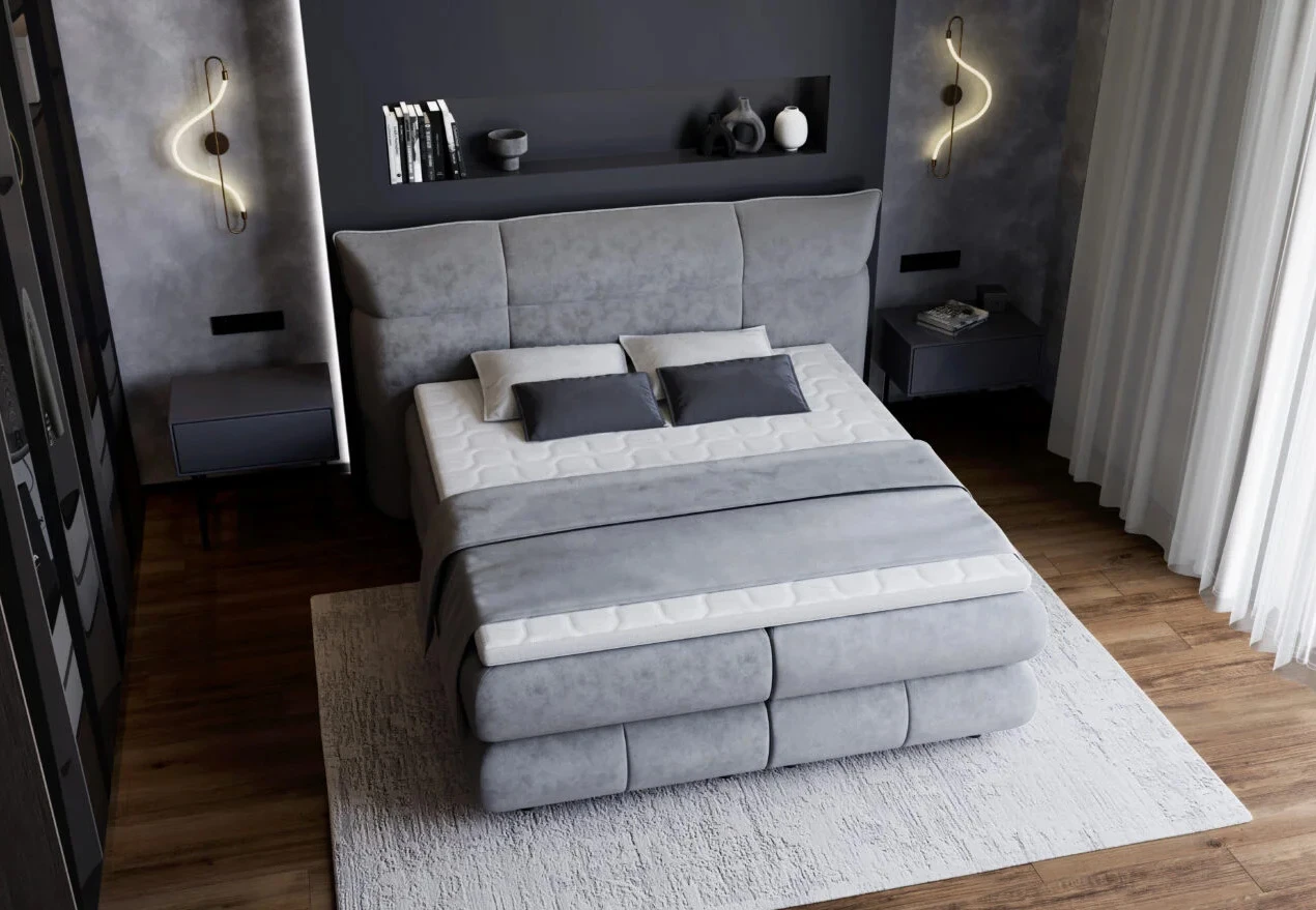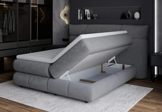 Vysoká manželská postel boxspring s úložným prostorem, ve které se Vám bude spát jako na obláčku.