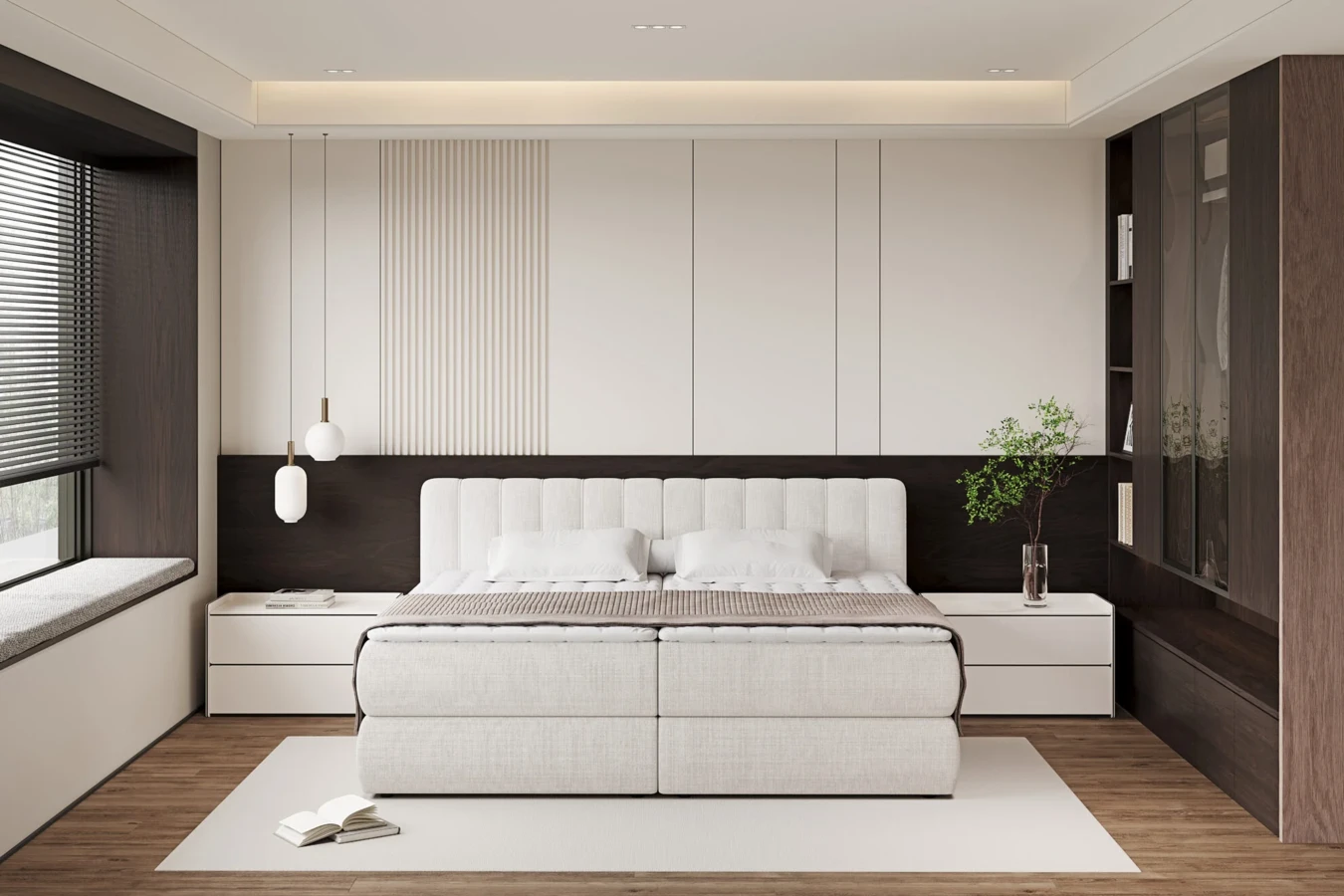 Kontinentální postel, tzv. boxspring, se vyznačuje vysokou spací plochou.