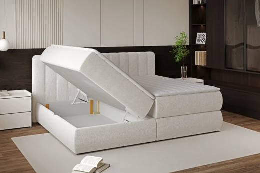Velká manželská postel s úložným prostorem, která nabízí velkou plochu pro pohodlný spánek.