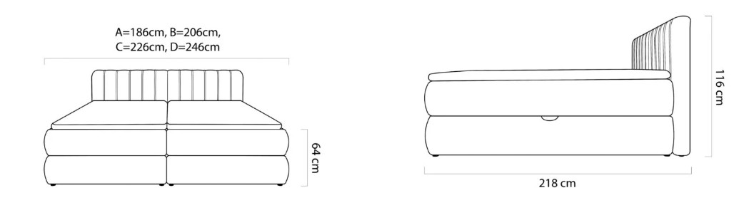 Praktickou součástí postele jsou dva prostorné úložné boxy.