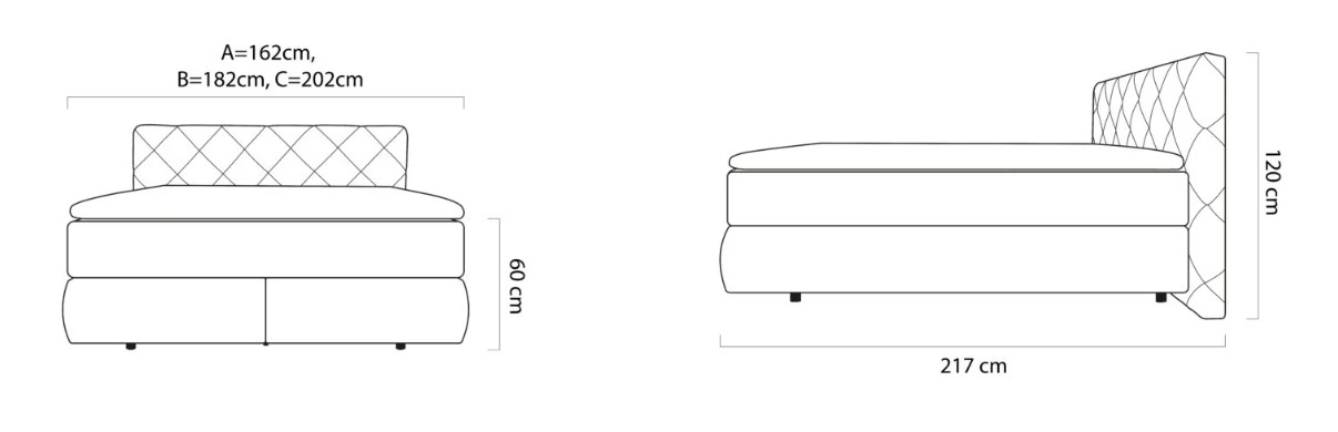 Luxusní manželská postel 160x200 s vysokou spací plochou tzv. kontinentální postel.