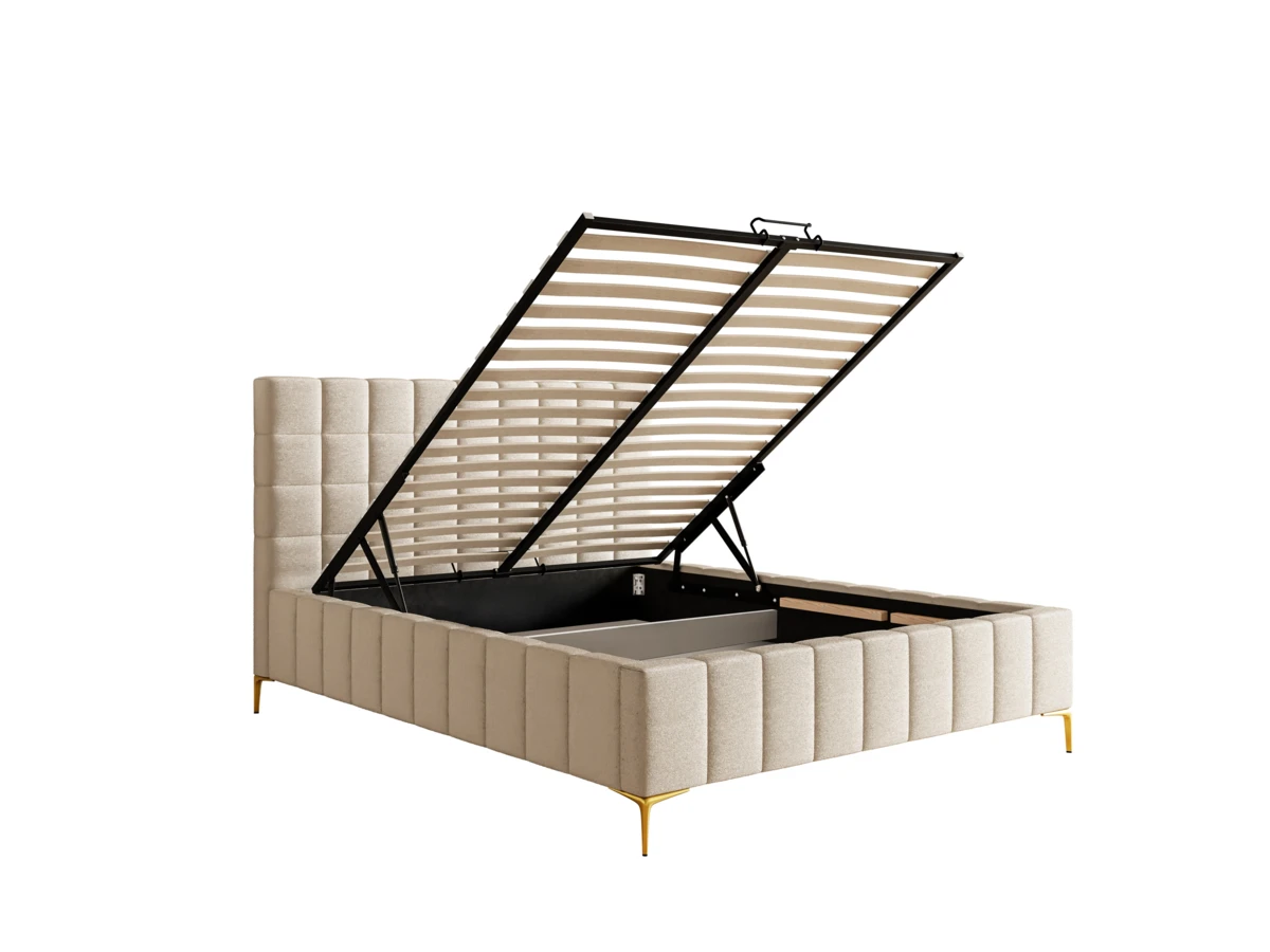 Nechte se okouzlit stylem glamour v podobě elegantní postele Grid, která vnese do vaší ložnice nádech luxusu. Mřížkované prošívání čela dodává posteli jedinečnou eleganci, kterou vkusně podtrhují vysoké zlaté nožky, které usnadní úklid Vám nebo Vašemu vysavači. Tento okouzlující kousek Vaši ložnici promění v příjemné místo, kde se budete cítit útulně a stylově.