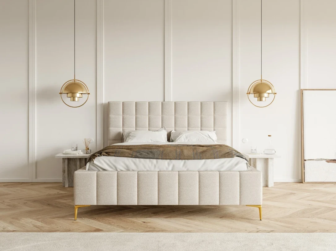 Nechte se okouzlit stylem glamour v podobě elegantní postele Grid, která vnese do vaší ložnice nádech luxusu. Mřížkované prošívání čela dodává posteli jedinečnou eleganci, kterou vkusně podtrhují vysoké zlaté nožky, které usnadní úklid Vám nebo Vašemu vysavači. Tento okouzlující kousek Vaši ložnici promění v příjemné místo, kde se budete cítit útulně a stylově.