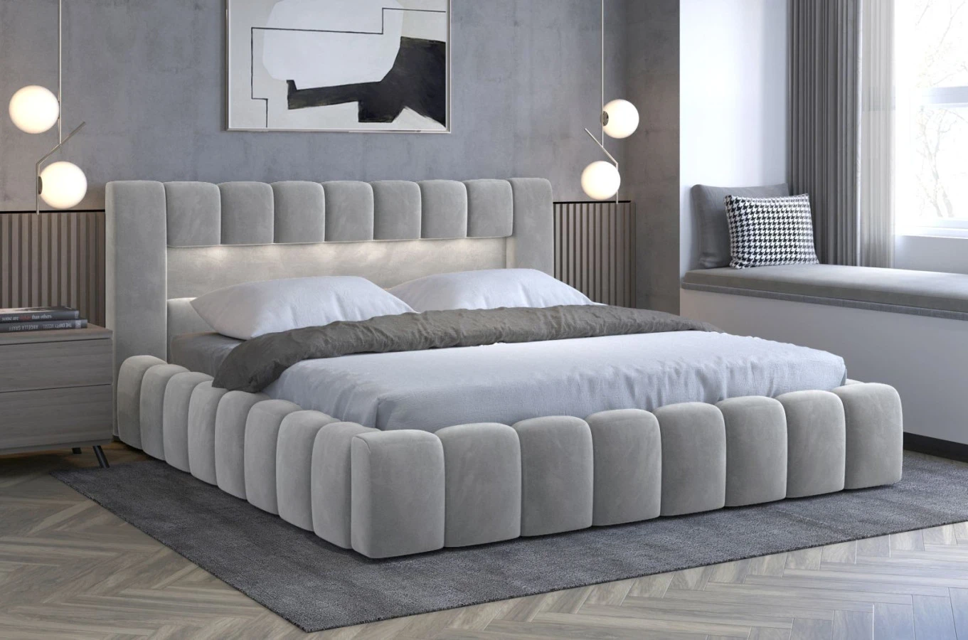 Tato postel Lamica je vyhotovena v mikroplyšovém potahu Monolith 84,