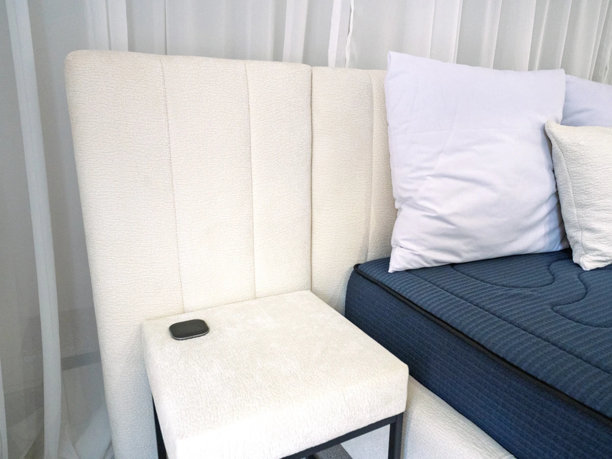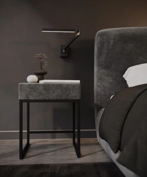 Doplňte svoji postel čalouněnými nočními stolky Lova a slaďte si potah stolků s postelí. Noční stolek Lova je důkazem, že i drobný kus nábytku může mít velký vliv na celkový dojem ložnice. Elegantní čalouněný korpus působí měkce a útulně, zatímco subtilní kovová konstrukce v černé barvě dodává stolku moderní charakter a vizuální lehkost.