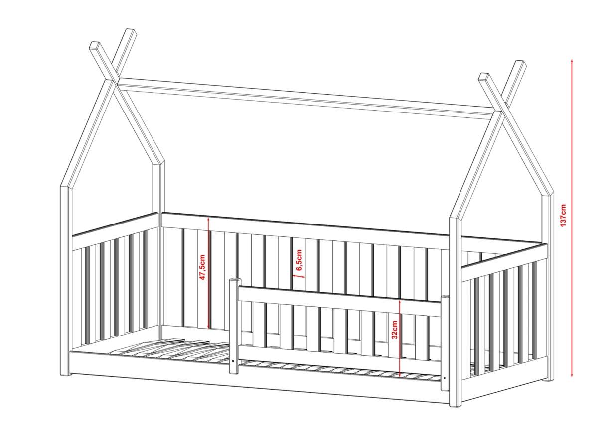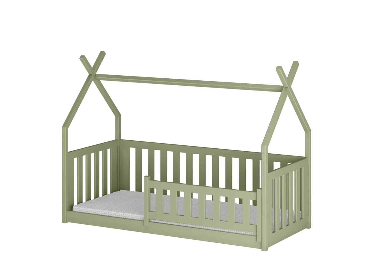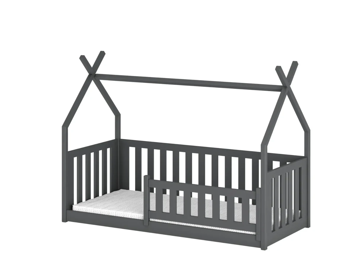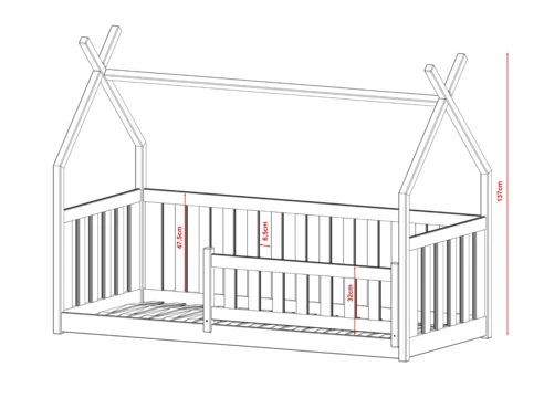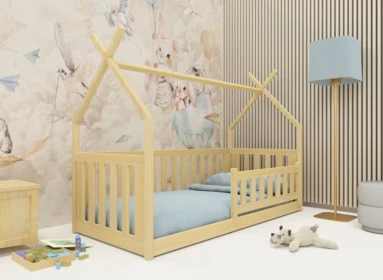 Dětská postel ve tvaru tee pee z masivní borovice je určena pro děti, které chtějí prostor na spaní i hraní.
