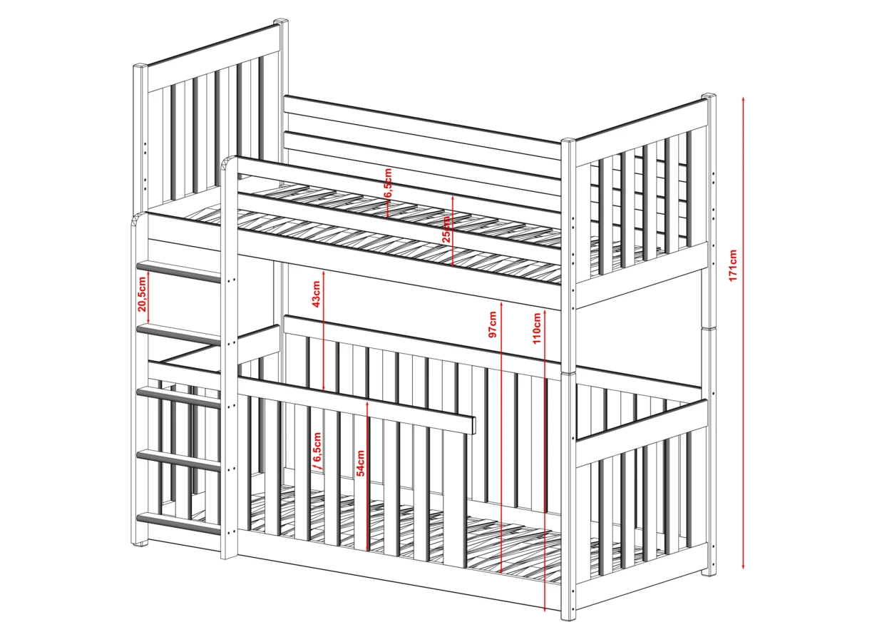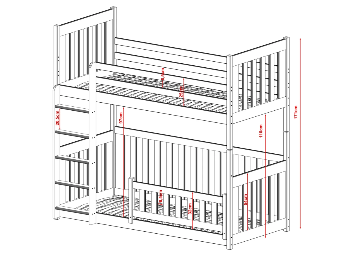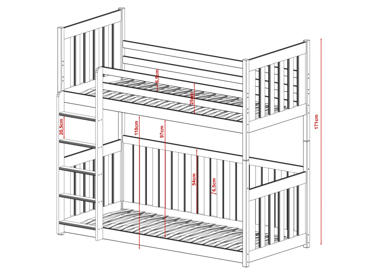 Postel je vyrobená z kvalitního borovicového dřeva, které je pevné, odolné a ekologické.