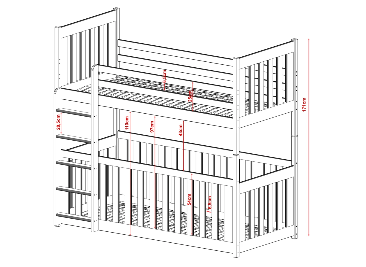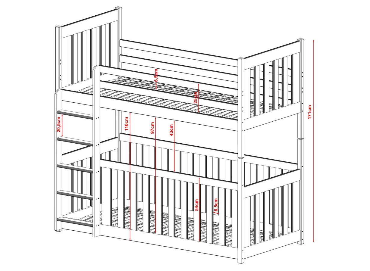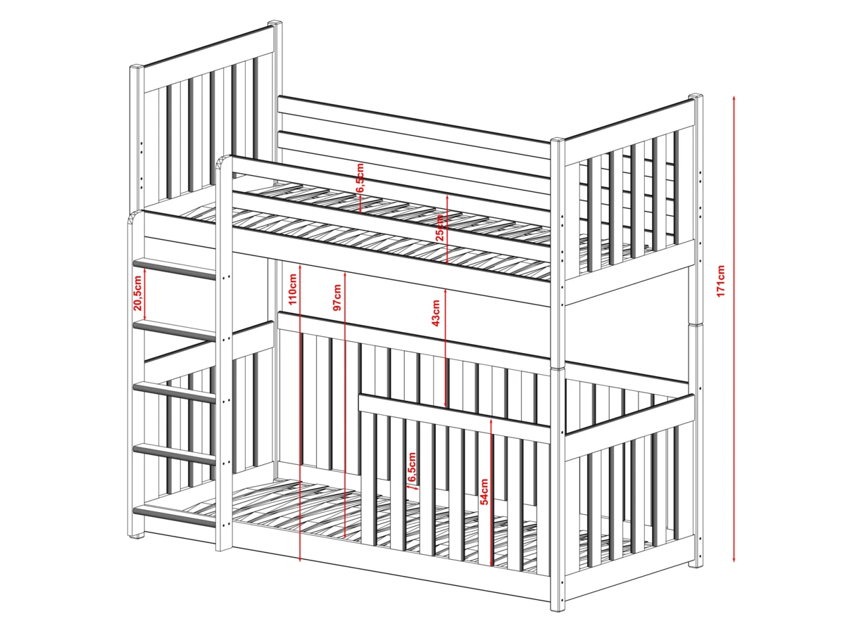 Postel je vyrobená z kvalitního borovicového dřeva, které je pevné, odolné a ekologické.