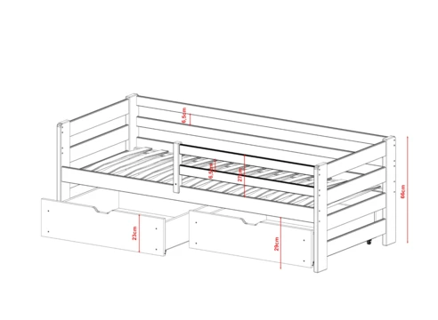 Postel je vyrobená z kvalitního borovicového dřeva, které je pevné, odolné a ekologické.