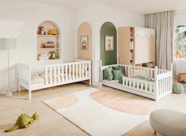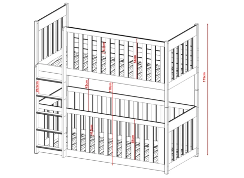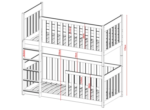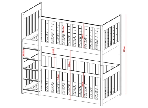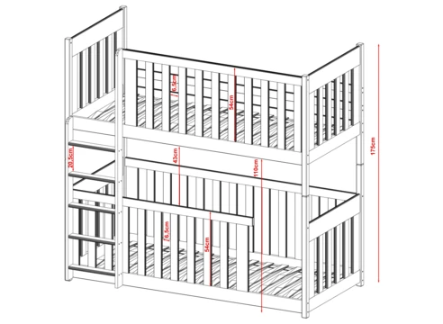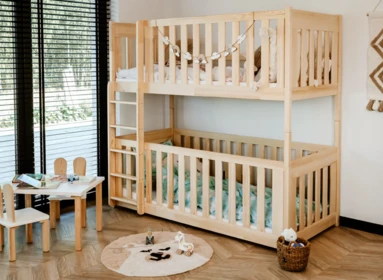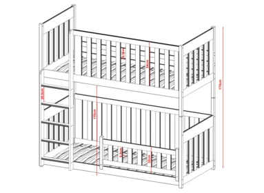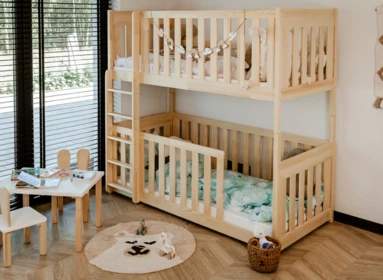 Dětská dvoupatrová postel nabízí dvě pohodlná lůžka nad sebou, ideální pro sourozence do menšího pokoje.
