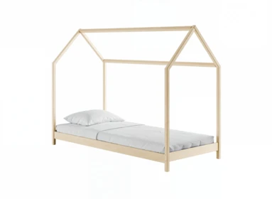 Dětská jednolůžková postel ve tvaru domečku je ideální volbou pro útulný a hravý pokojíček.