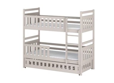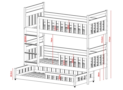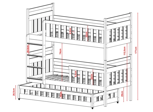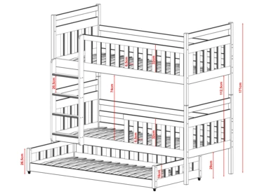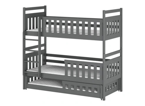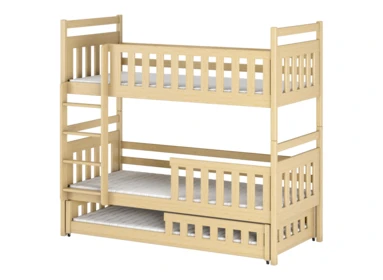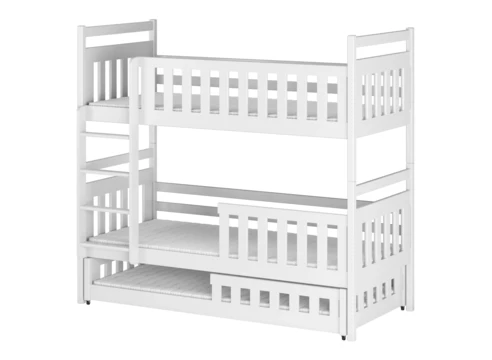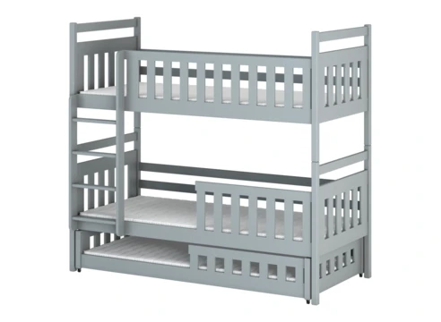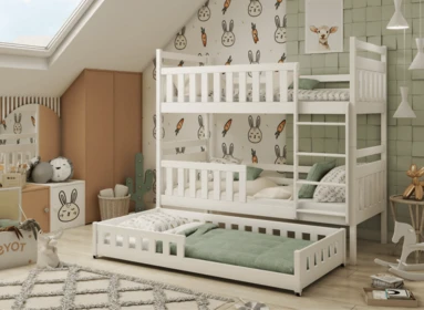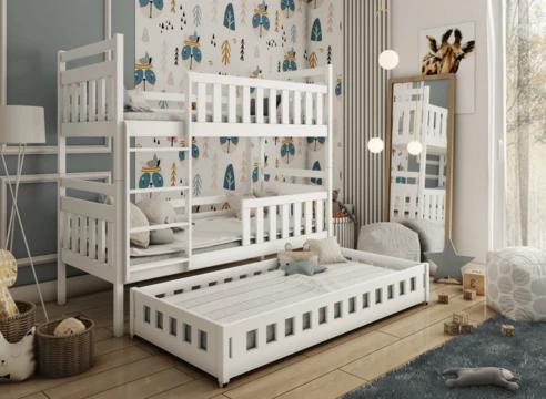 Dětská dvoupatrová s přistýlkou postel nabízí dvě pohodlná lůžka nad sebou a přistýlku.