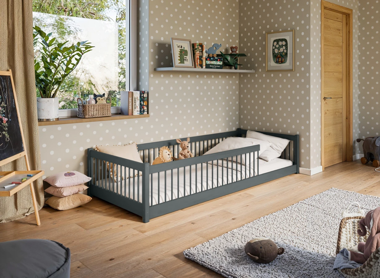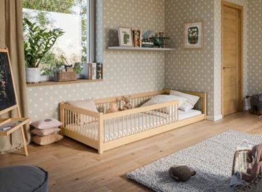 Dětská jednolůžková postel, která je koncipována jako první samostatné lůžko pro chlapce i dívky.