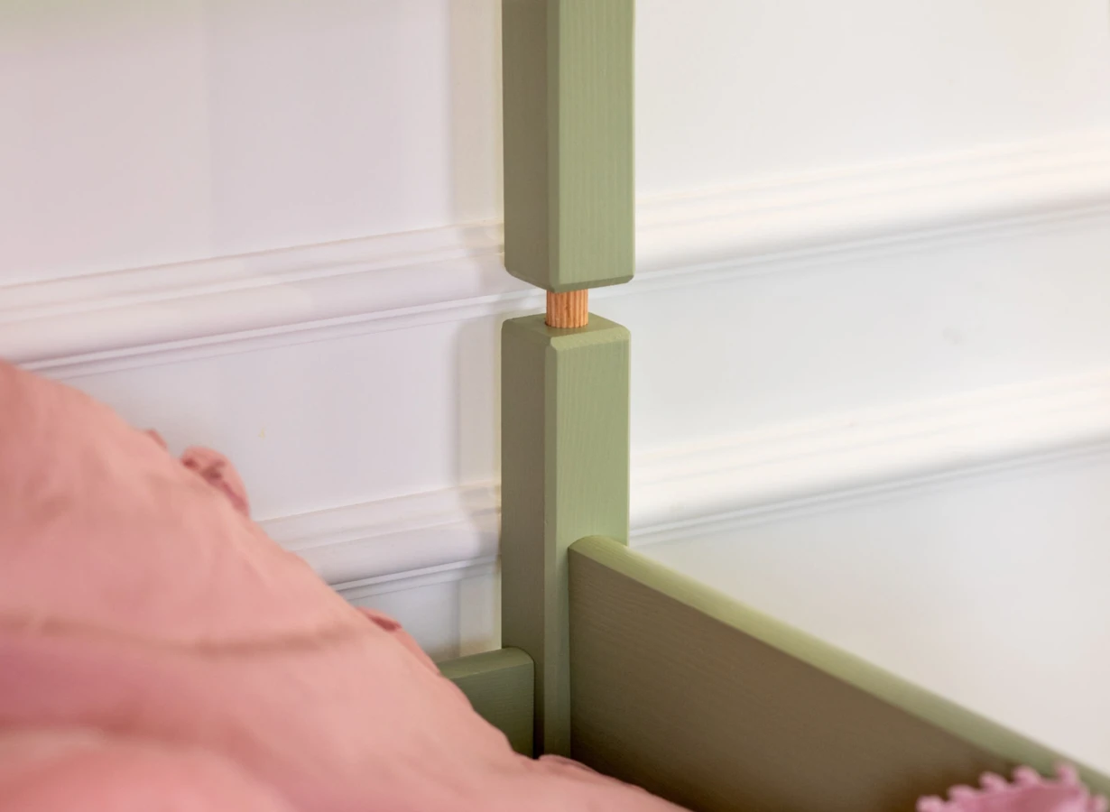 Postel je vyrobená z kvalitního borovicového dřeva, které je pevné, odolné a ekologické.