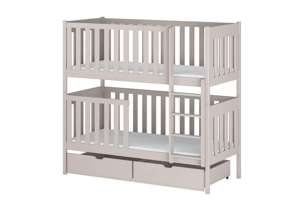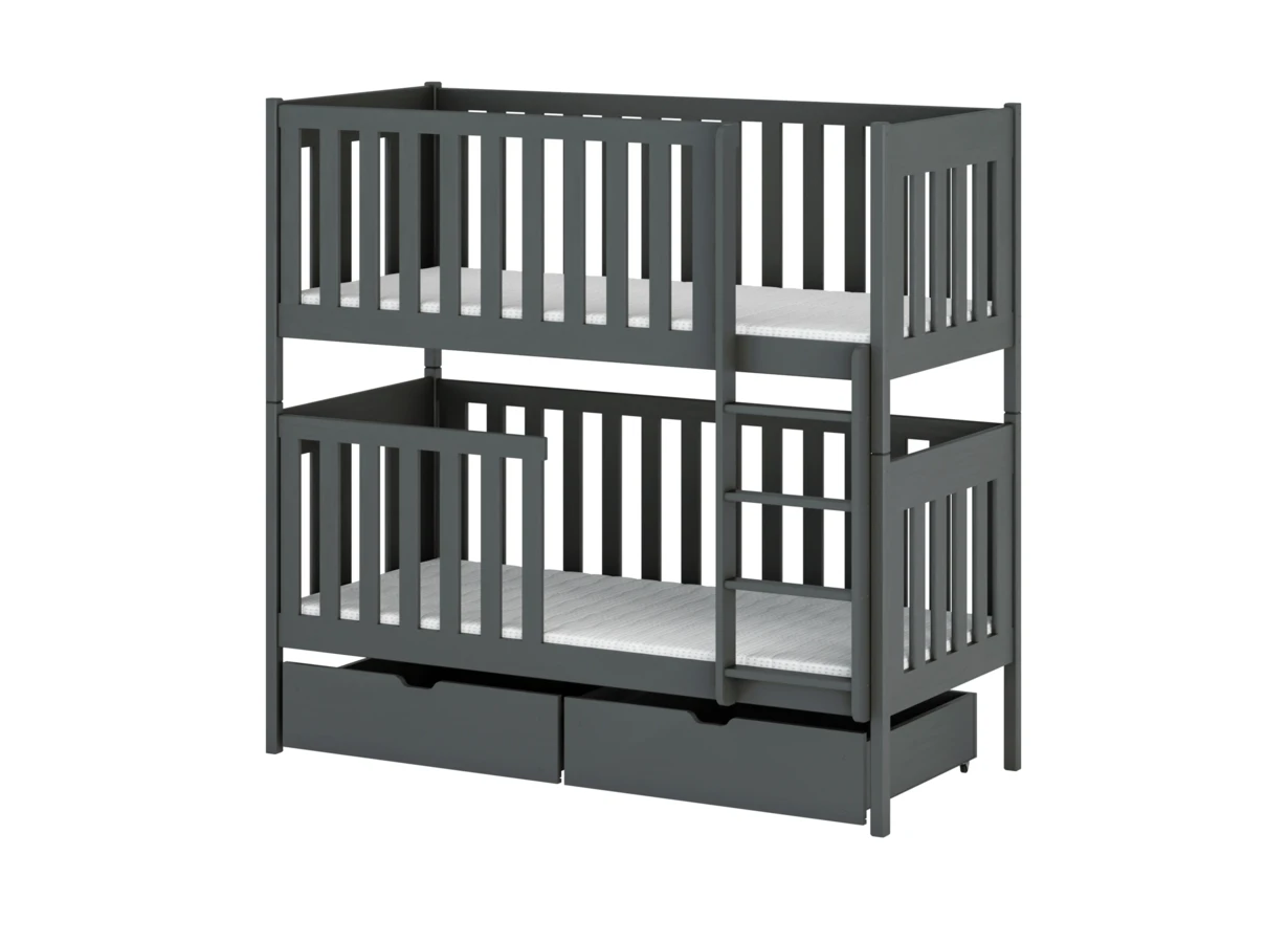 Dvoupatrová postel s úložným prostorem nabízí dvě plnohodnotná lůžka v jednom rámu, ideální pro sourozence nebo hosty.