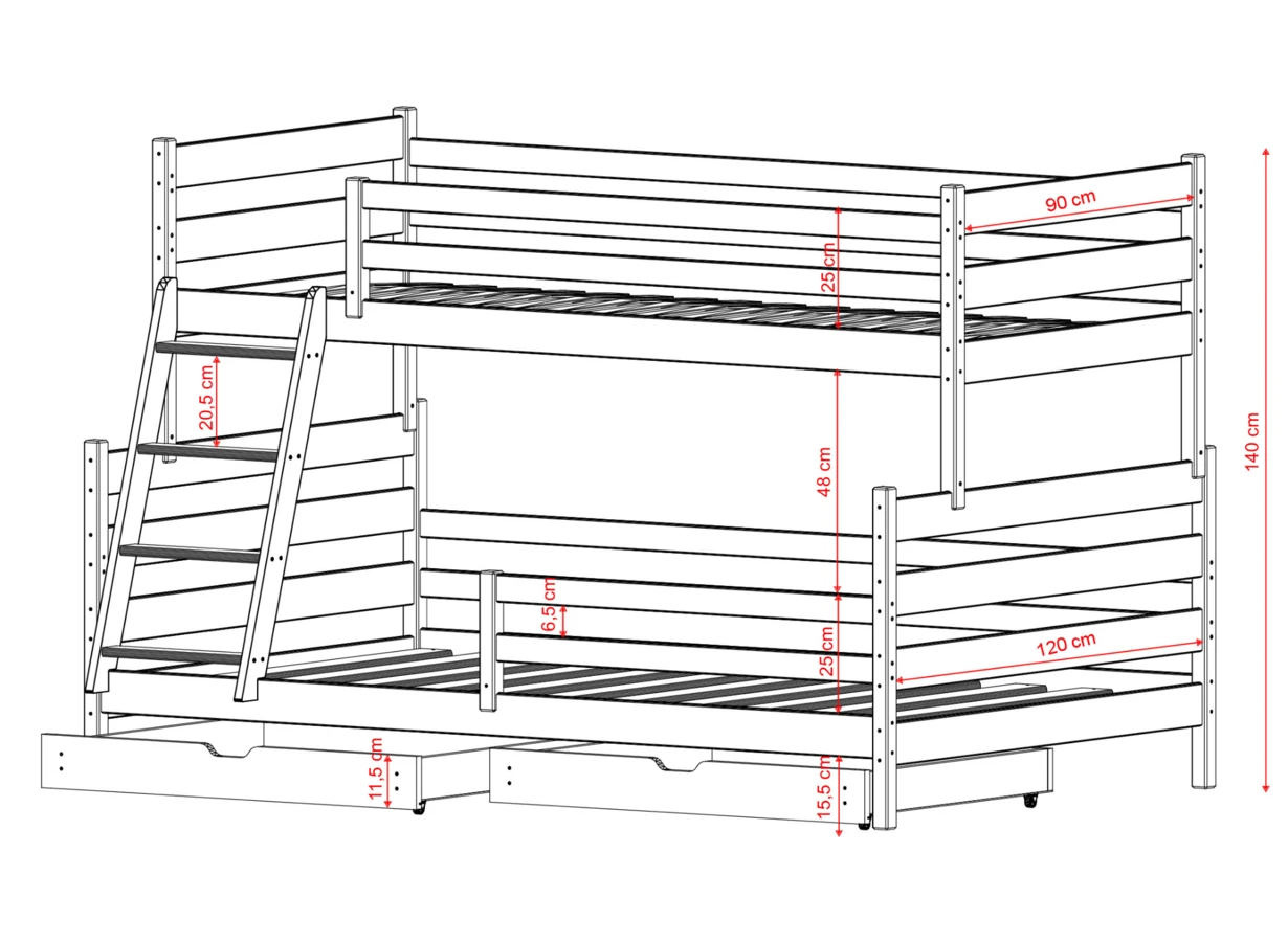 Dětská patrová postel FAMI - 90x200 + 120x200