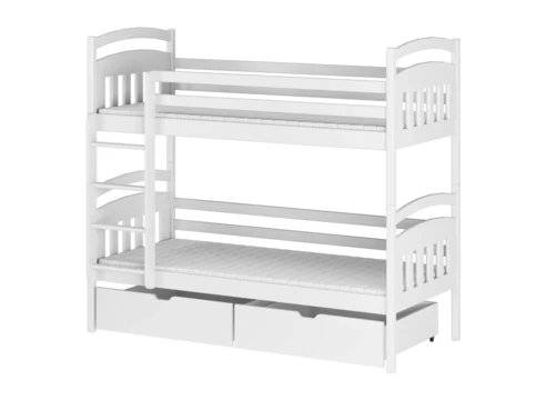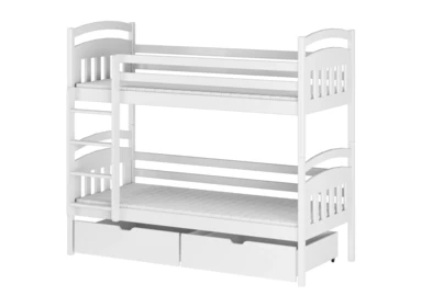 Dětské dvoupatrové lůžko s úložným prostorem, které je svým uspořádáním ideální pro sourozence do malého pokoje.