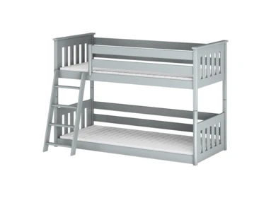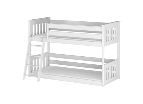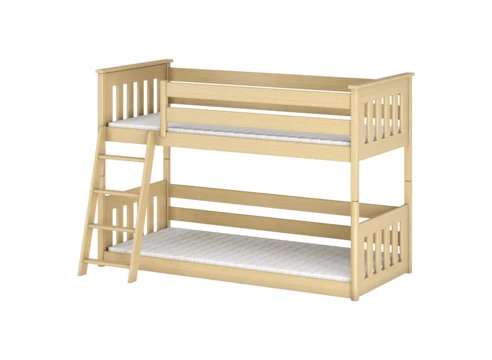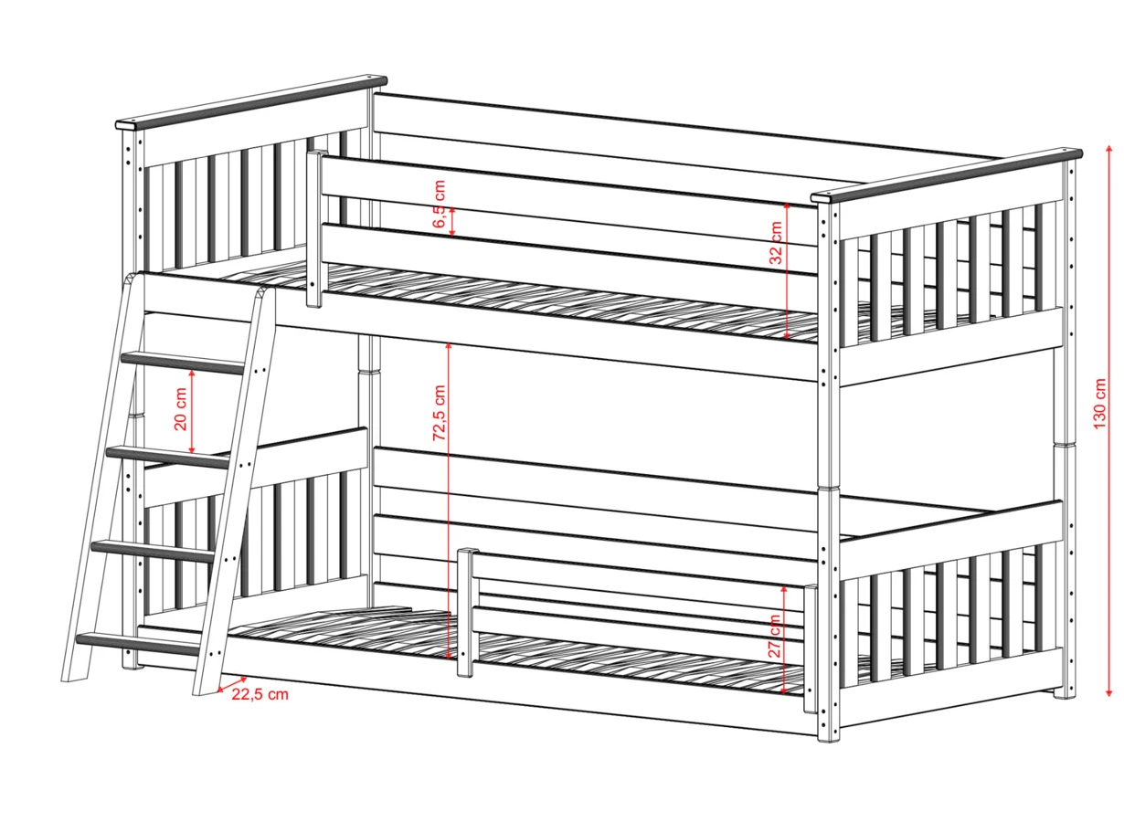 Dětská dvoupatrová postel z masivní borovice nabízí dvě pohodlná lůžka v jednom a šetří místo v pokoji.