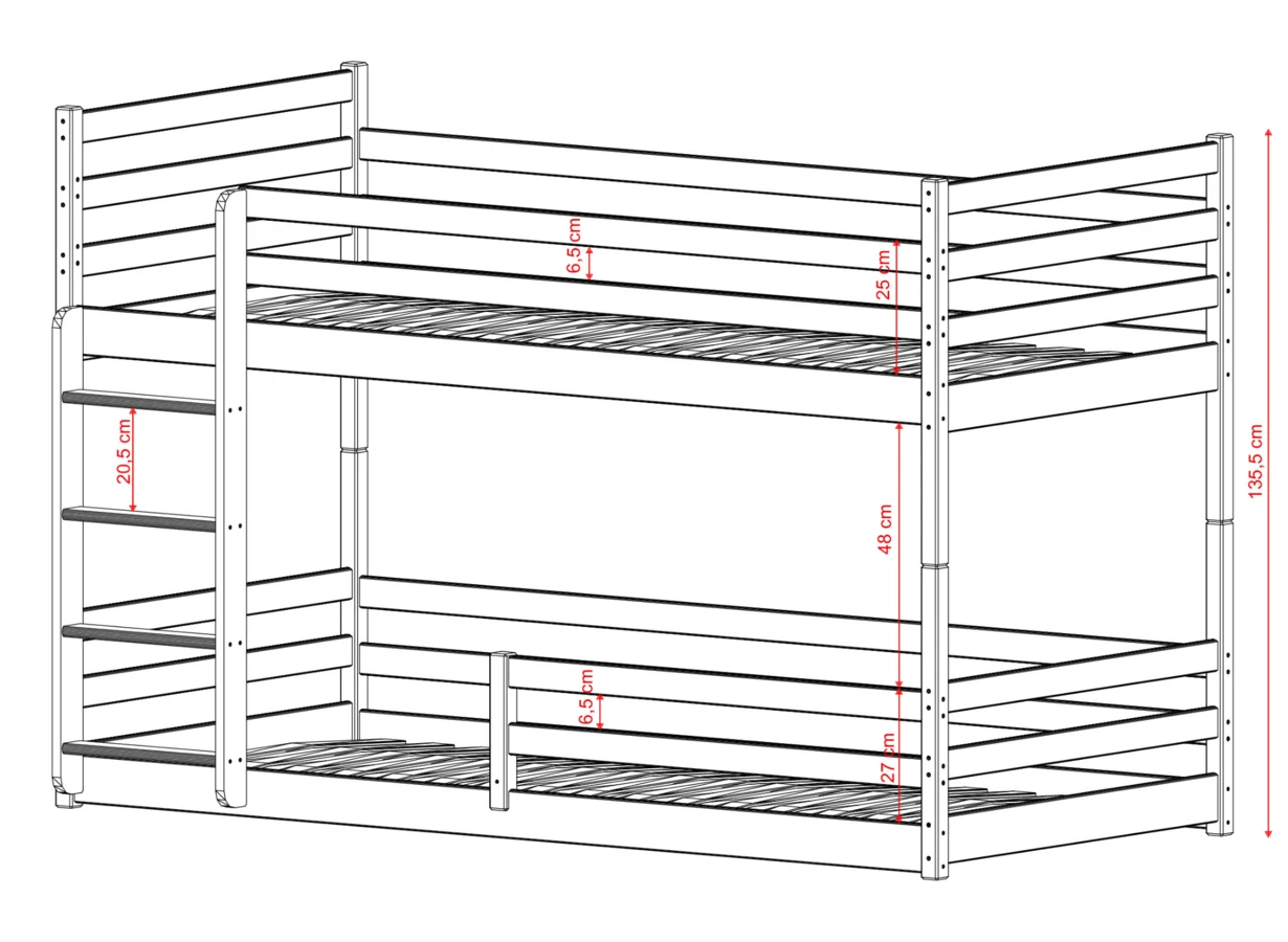 Postel je vyrobená z kvalitního borovicového dřeva, které je pevné, odolné a ekologické.