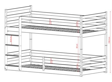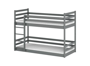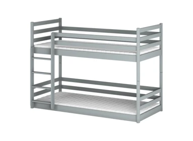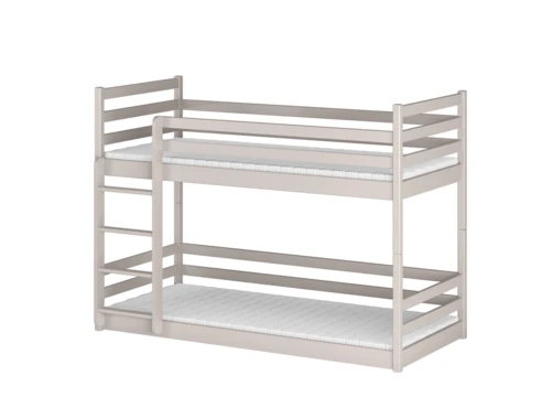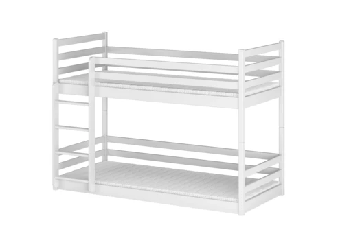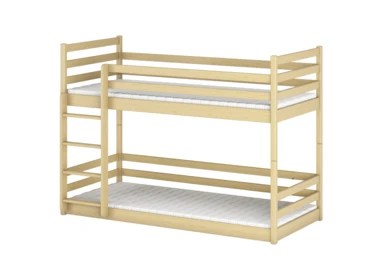 Dětská dvoupatrová postel z masivní borovice nabízí dvě lůžka v jednom, ideální pro menší pokoje.