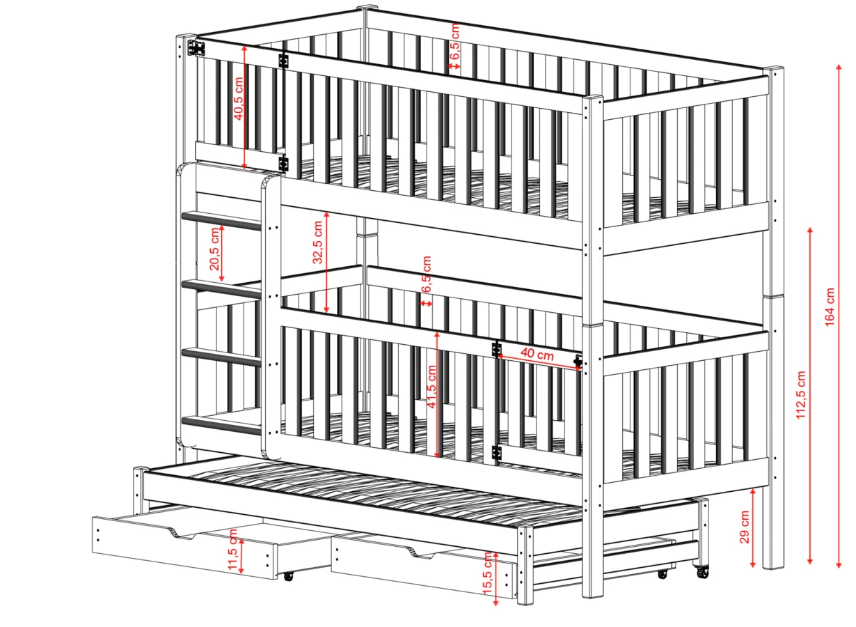 Dětská patrová postel s přistýlkou AGATHA - 80x180