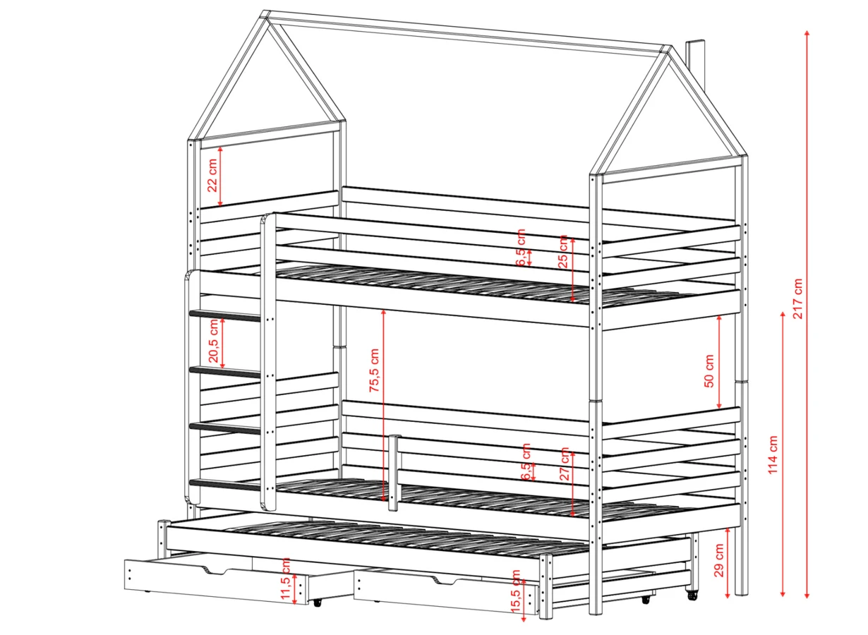 Dětská patrová postel s přistýlkou DALIA - 90x200