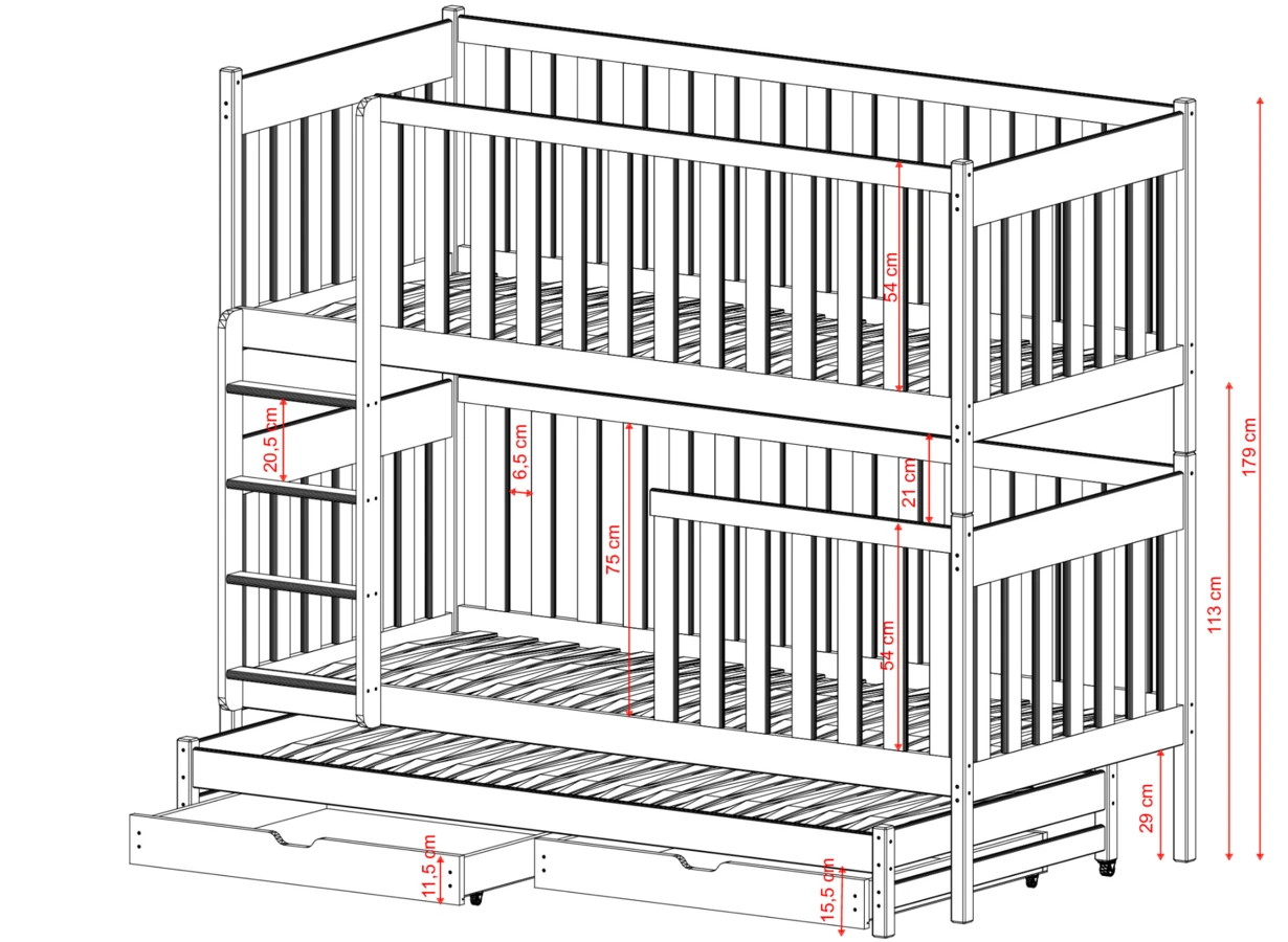 Dětská patrová postel s přistýlkou EMILKA - 90x200