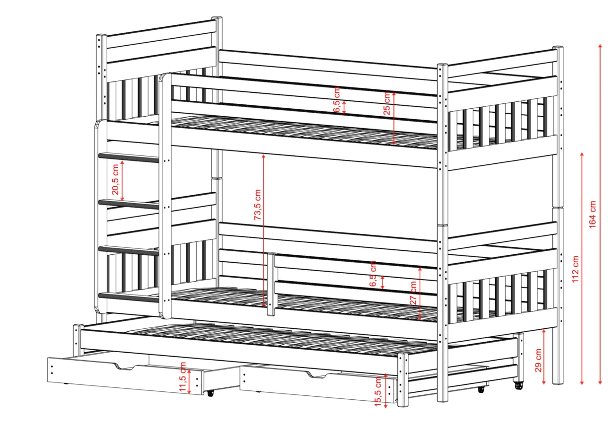 Dětská patrová postel s přistýlkou SEWERYN - 90x200