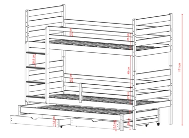 Dětská patrová postel s přistýlkou TOMI - 80x180