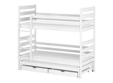 Dvoupatrová postel s přistýlkou nabízí tři lůžka v jednom - ideální pro sourozence do sdílených pokojů i menších prostor.