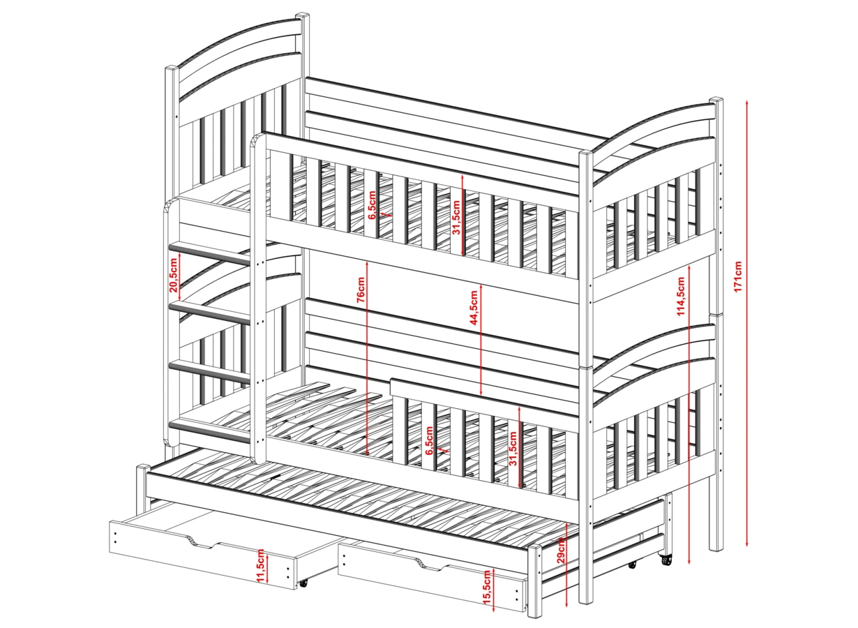 Dětská patrová postel s přistýlkou VIKI - 90x200
