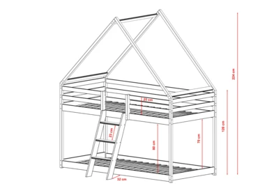 Dětská dvoupatrová postel ve tvaru domečku je ideální pro dvě děti i do menších dětských pokojů