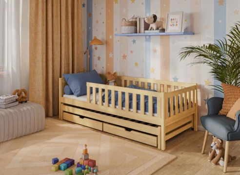 Postel je vyrobená z kvalitního borovicového dřeva, které je pevné, odolné a ekologické.