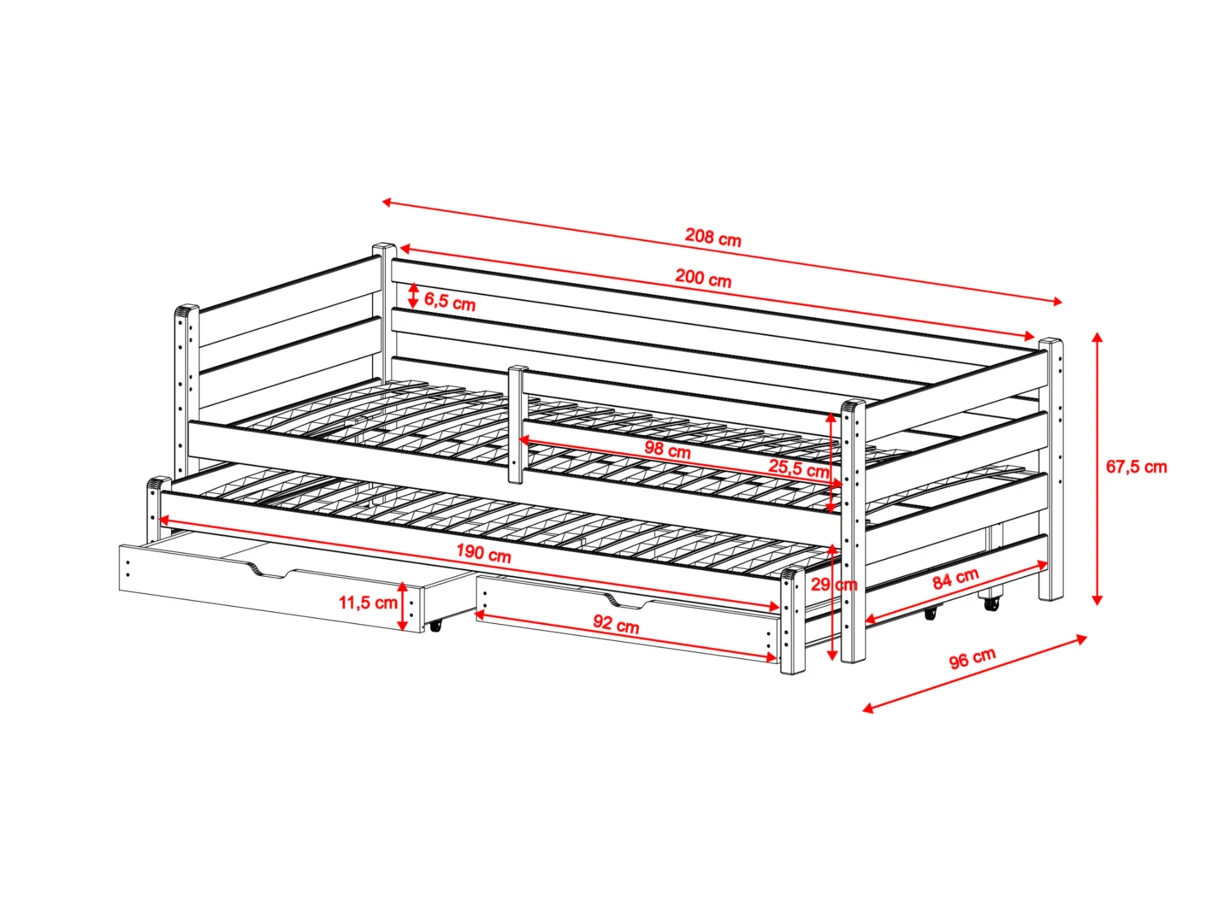 Pod lůžkem se totiž skrývá další výsuvné lůžko se spací plochou o velikosti 90x190 cm.