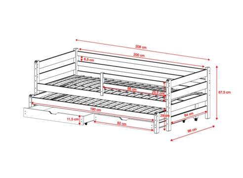 Postel je vyrobená z kvalitního borovicového dřeva, které je pevné, odolné a ekologické.