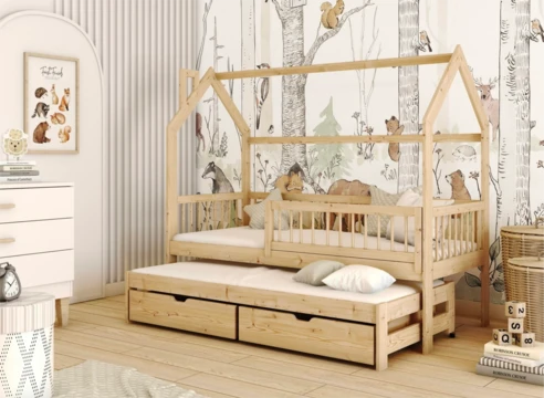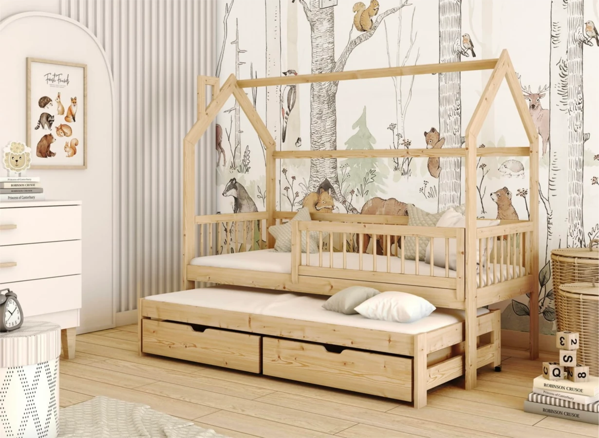 Dětská domečková postel s výsuvnou přistýlkou je vhodná pro děti, které chtějí mít vlastní prostor i záložní lůžko.