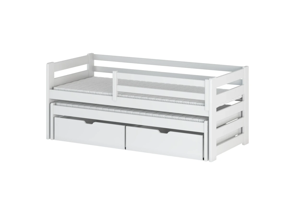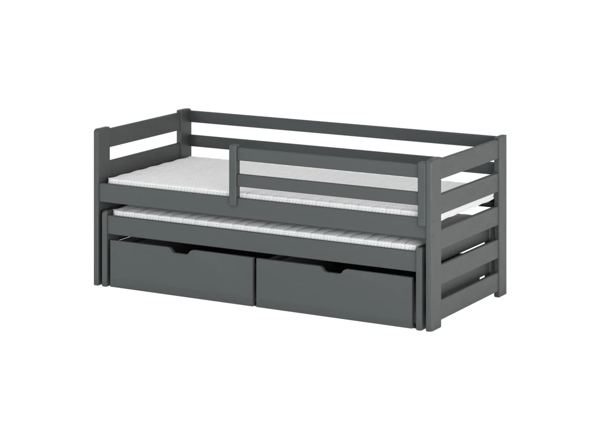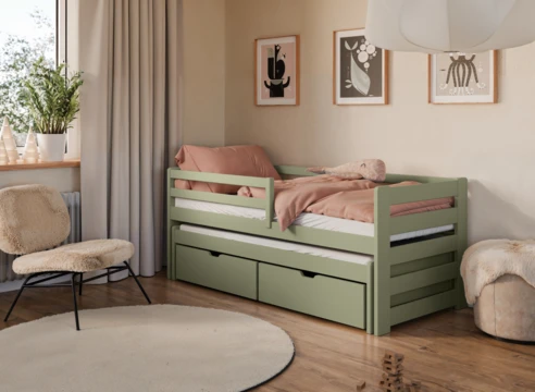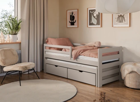 Dětská postel s výsuvnou přistýlkou a úložným prostorem je skvělé řešení vhodné pro dva spáče.