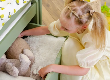 Obsahuje také dvě prostorné zásuvky, které využijete jako úložný prostor pro hračky či ložní prádlo.