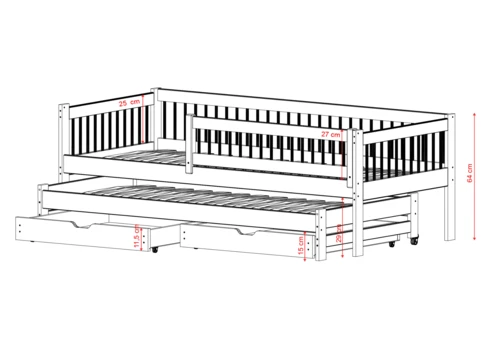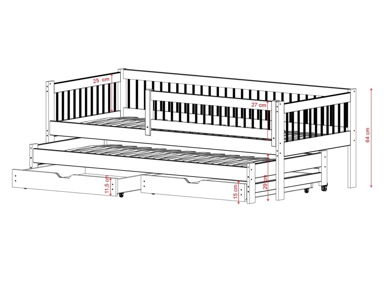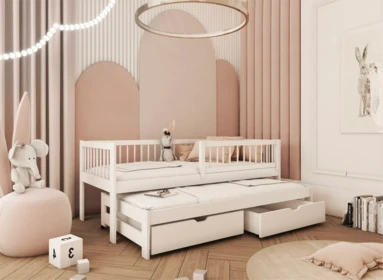 Dětská postel s výsuvnou přistýlkou a úložným prostorem je skvělé řešení vhodné pro dva spáče.
