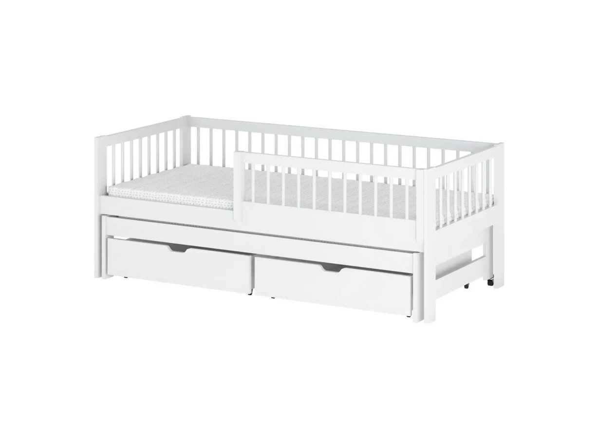 Obsahuje také dvě prostorné zásuvky, které využijete jako úložný prostor pro hračky či ložní prádlo.