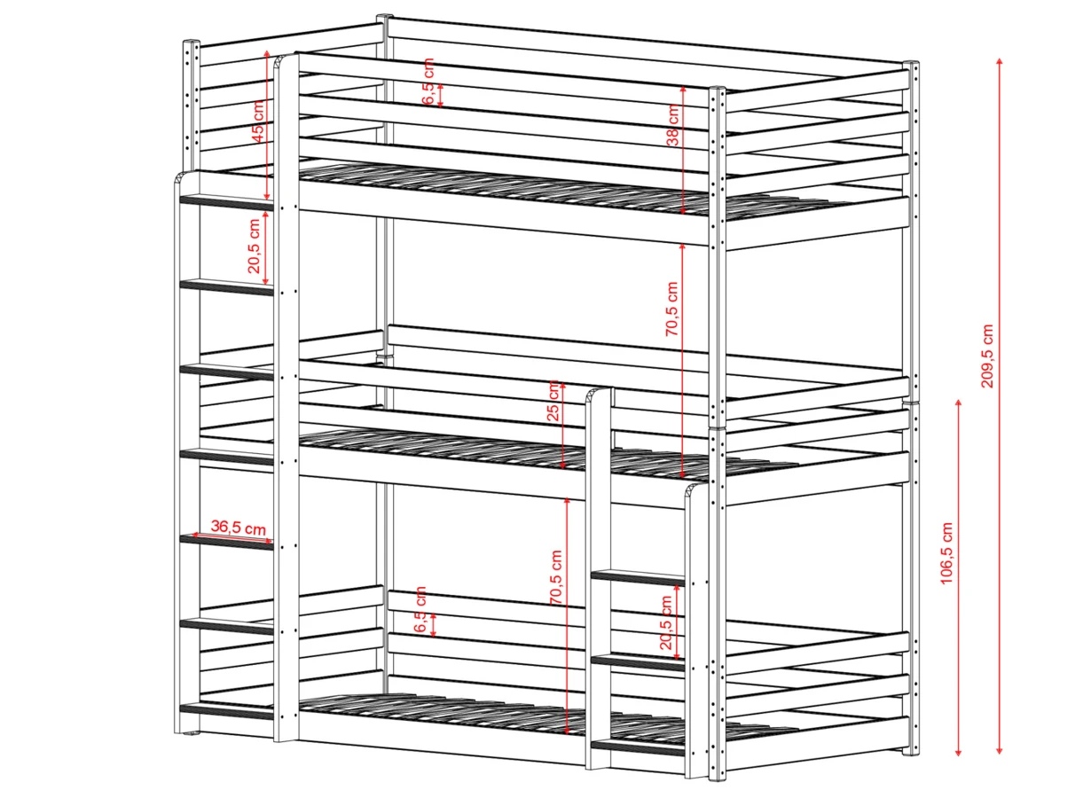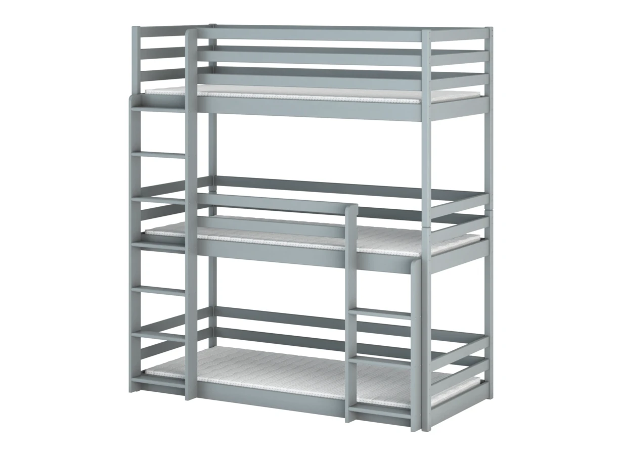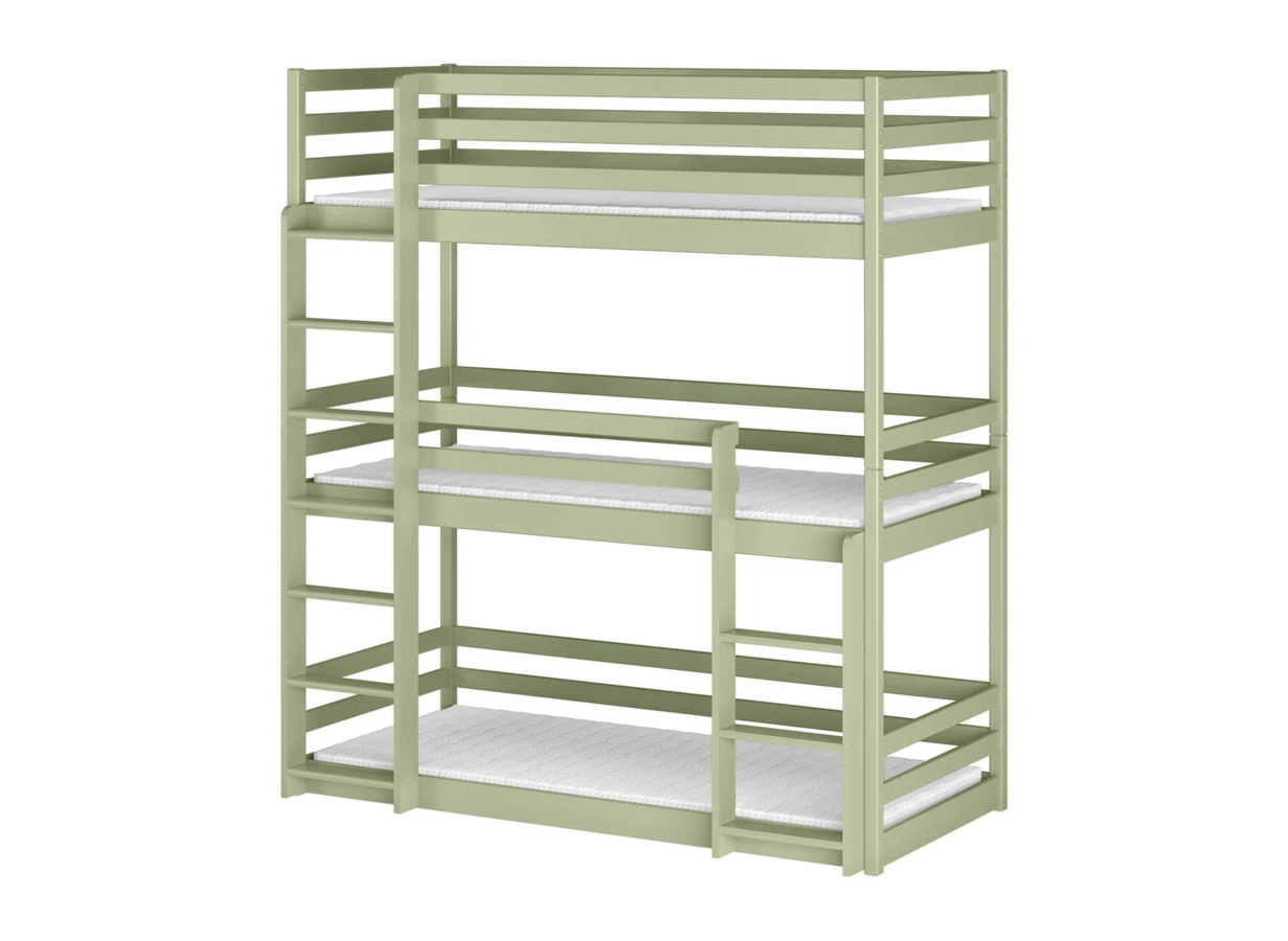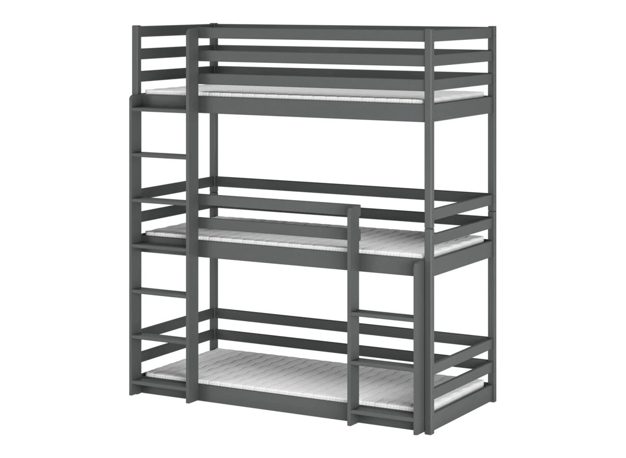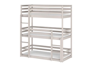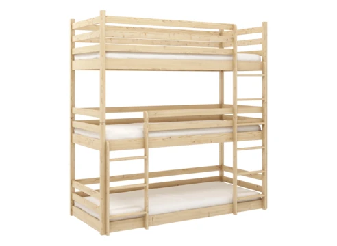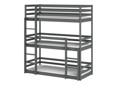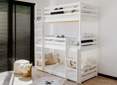 Dětská třípatrová postel nabízí až tři spací místa v jednom, ideální pro sourozence do malého pokoje.