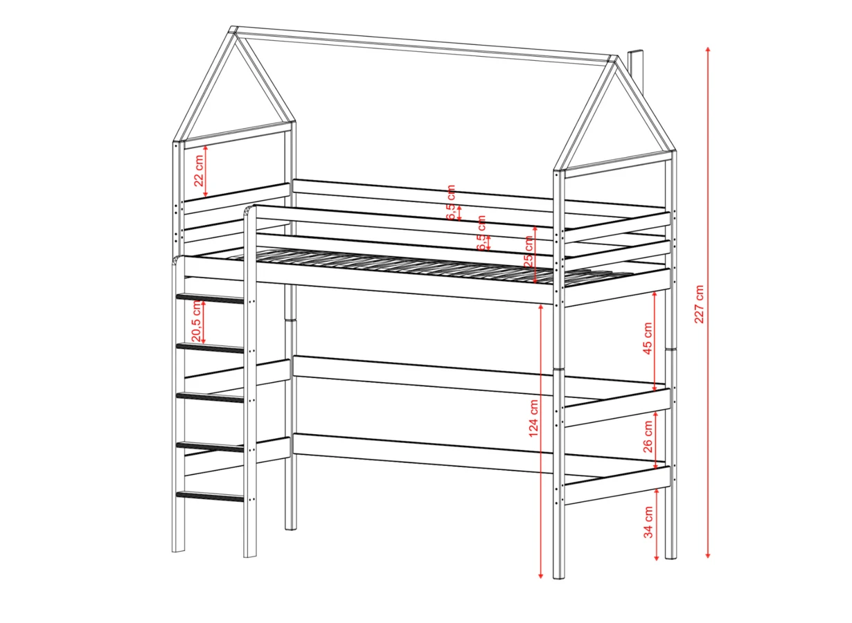 Díky její výšce umožňuje využít prostor pod lůžkem například pro psací stůl nebo jako úložný či hrací kout.