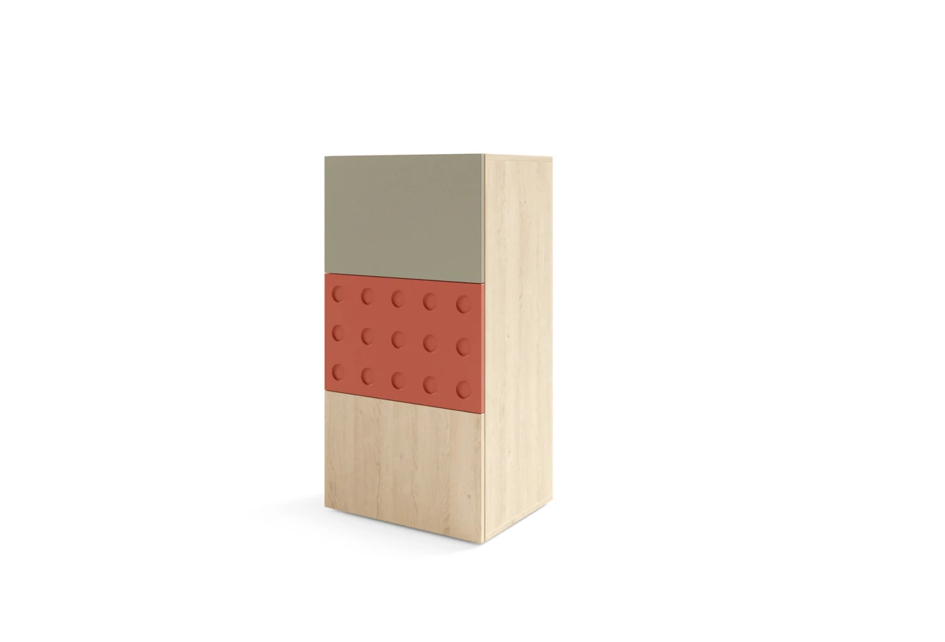 Nábytek umožňuje vyměňovat různě barevná dvířka o stejné velikosti mezi sebou,
