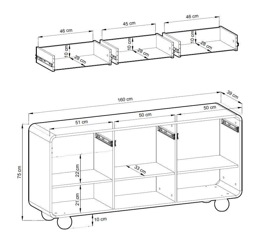 Konstrukce je vyrobena z kvalitní laminované a MDF desky.