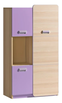 V levé části se pak nachází dvojice dvířek a jedna polička.