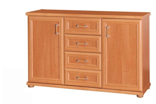 Disponuje dvěma dvířky a čtyřmi šuplíky. Vevnitř police.