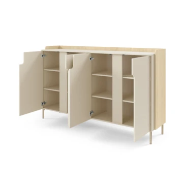 Dvířka jsou zdobeny originálními průřezy, které odhalují rafinované vertikální frézování.
