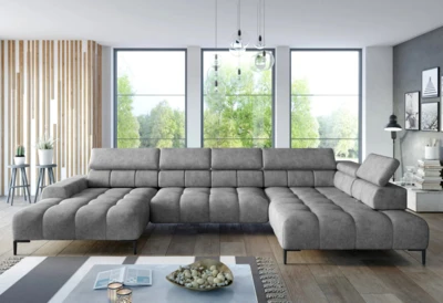 Moderní rohová sedačka do U s elektrickým výsuvem.