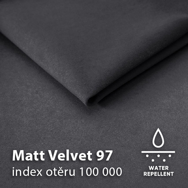 Potah tvoří matný mikroplyš Matt Velvet 97 s voděodolnou impregnací.