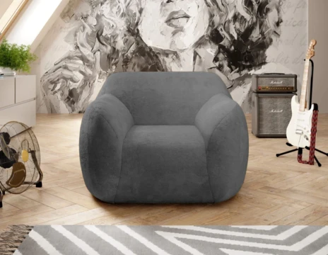Moderní baculaté křeslo, které vyniká svými oválnými měkkými tvary.